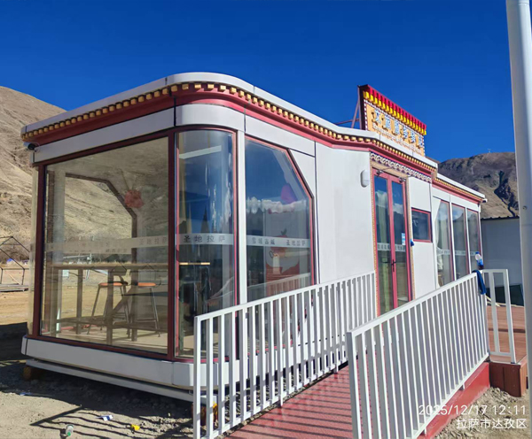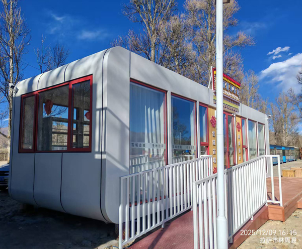 产品应用:定制专用苹果舱驿站,选用高强度复合板材,加装加厚保温层与防紫外线涂层,适配拉萨温差大、强紫外线环境,采用模块化设计,可快速拼装移动,内部定制休息区、储物区及便民服务台,配备通风系统与节能温控设备。